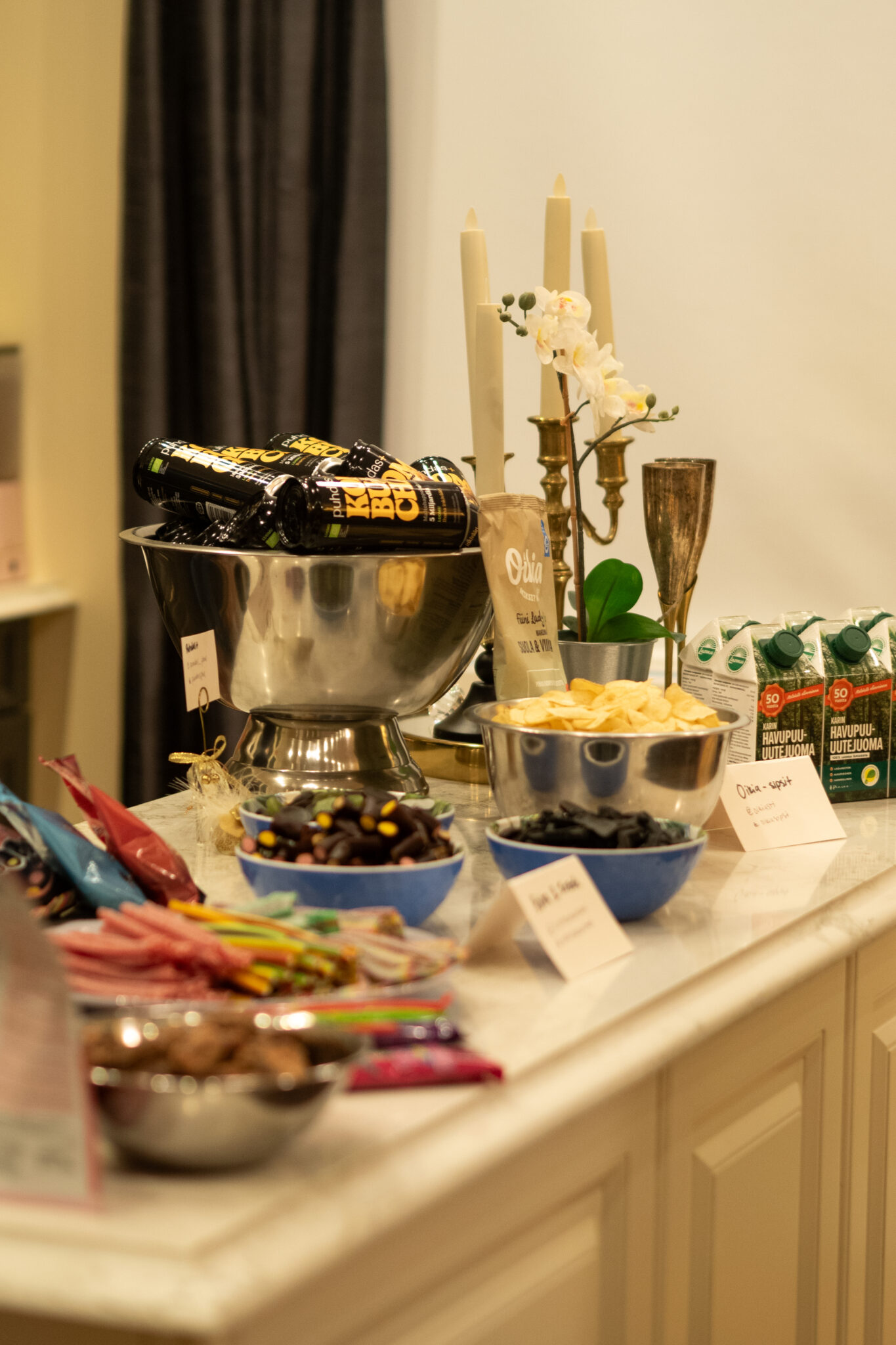 Alkoholittoman juomatarjoilun meille sponsoroi Puhdas+ kombuchoilla. Juoma olikin monelle jo ennestään tuttu. Tätä herkullista helmeilevää juomaa menee helposti purkki, jos toinenkin! Puhdas+ brändi edustaa rehellisyyttä ja yksinkertaisuutta. Tuotteet eivät sisällä mitään ylimääräistä, vain hyvinvoinnille kaiken oleellisen. Yöllä kylpyyn pulahtaessa maistui vielä kombucha, joka helpottaa myös ruuansulatusta herkuttelun jälkeen.
