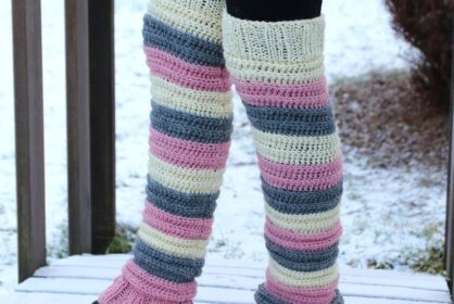 Jonnan koukkujaNämä virkatut pitkät säärystimet virkataan ensin tasona, jonka jälkeen ommellaan takasauma kiinni. Molemmista suuaukoista poimitaan silmukat ja neulotaan joustinneuletta. Mallisäärystimissä…