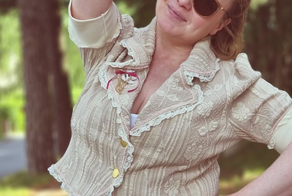VillaNannaJotakin uutta piti saada vanhaan kirpparilta löytyneeseen paitaan. Paita on minulle monta numeroa liian iso, mutta se ei haittaa tahtia…
