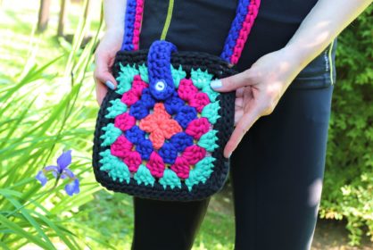 Jonnan koukkujaOntelotrikoolangasta valmistuu pikkulaukku kuin huomaamatta! 😊 Virkkaa kaksi isoäidinneliötilkkua ja kiinnitä toisiinsa; helppoa, hauskaa ja värikästä! Voit halutessasi ommella laukkuun…