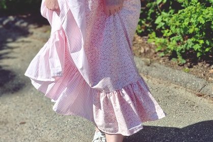 VillaNannaLiian pienistä vaatteista on mahdollista saada sopivaakin päälleen. Tarvitsee vain yhdistellä osia toisiinsa, niin lopputuloksena on kaikkea ihanaa ja rönsyilevää….