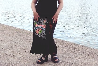 VillaNannaMinun suuri idolini Outi Pyy on aikanaan tehnyt t-paidoista hameen ja tietenkin minun oli tehtävä oma versio, t-paidoista tehty volankihame….
