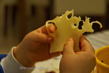 Emmi Anniina…vaikka Pikkusankarille! Se on nyt semmoinen juttu, että Pikkusankari saa syödä ihan mitä vain. Toivottavasti teiltä keneltäkään ei tippunut…